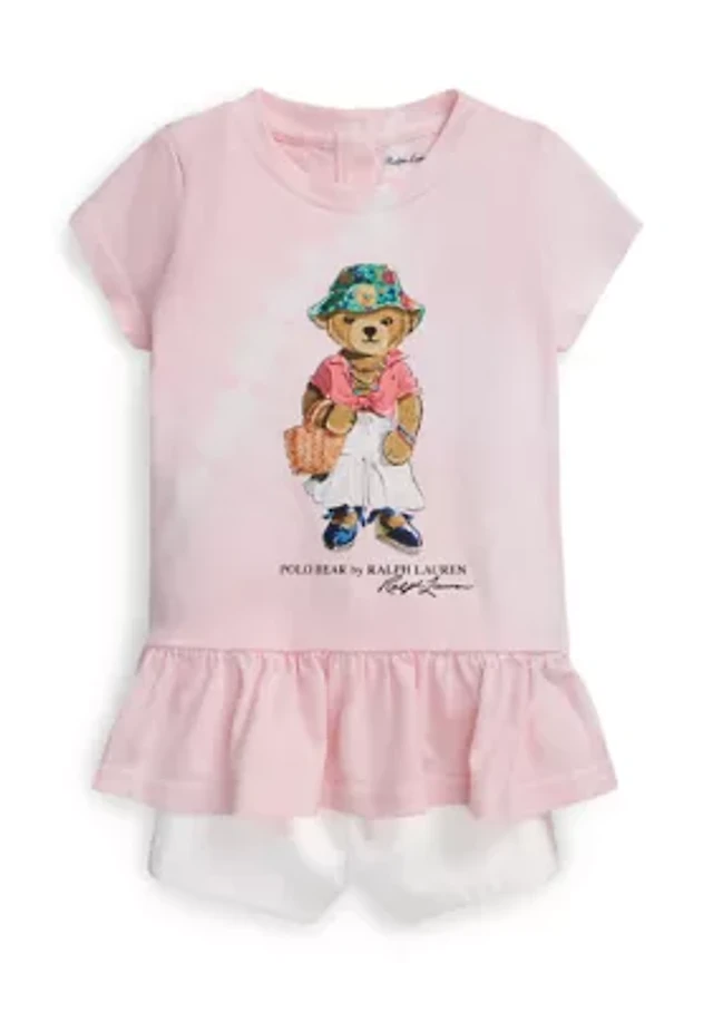 Baby Girls Polo Bear Cotton T-Shirt & Twill Short Set
