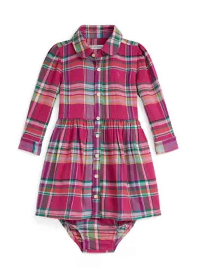 Baby Girls Plaid Cotton Poplin Shirtdress & Bloomer