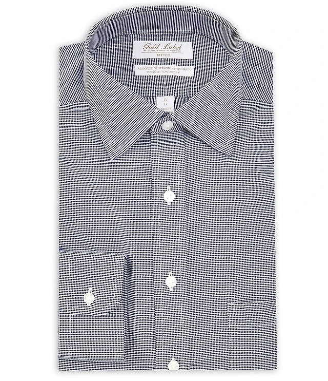 Gold Label Roundtree & Yorke Big & Tall Non-Iron Point Collar Grid Print Dress Shirt
