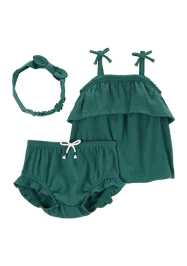 Baby Girls Sleeveless Smocked Floral 3 Piece Set