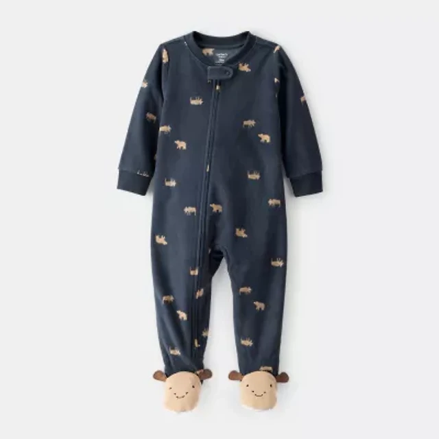 Carter's Baby Boys Fleece Round Neck Long Sleeve Footed Pajamas