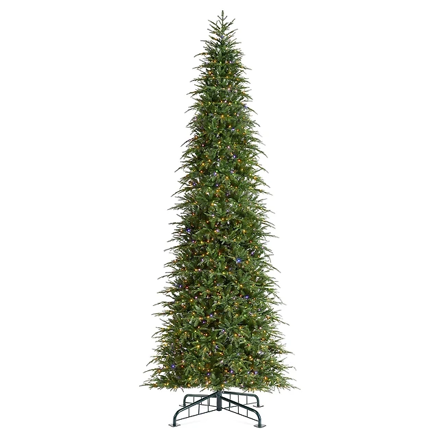 Glitzhome® 15ft Pre-Lit Green Slim Fir Artificial Christmas Tree, Multicolor LED Lights