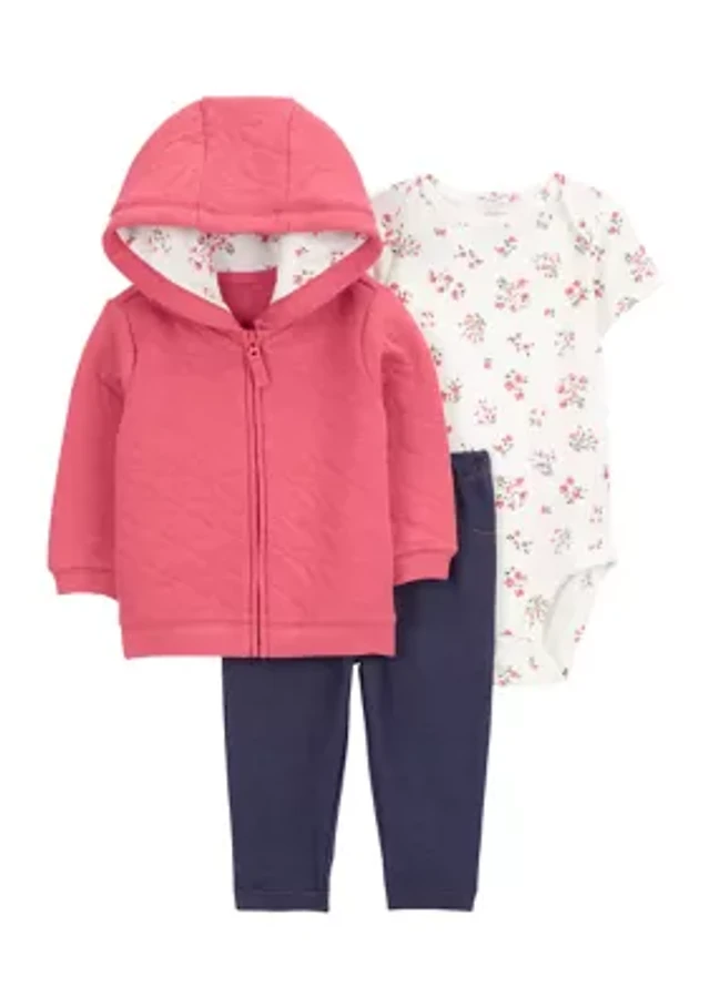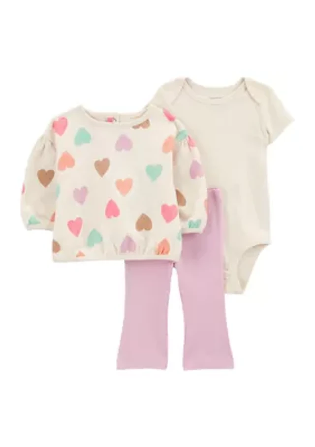 Baby Girls Three Piece Printed Top and Bodysuit Set