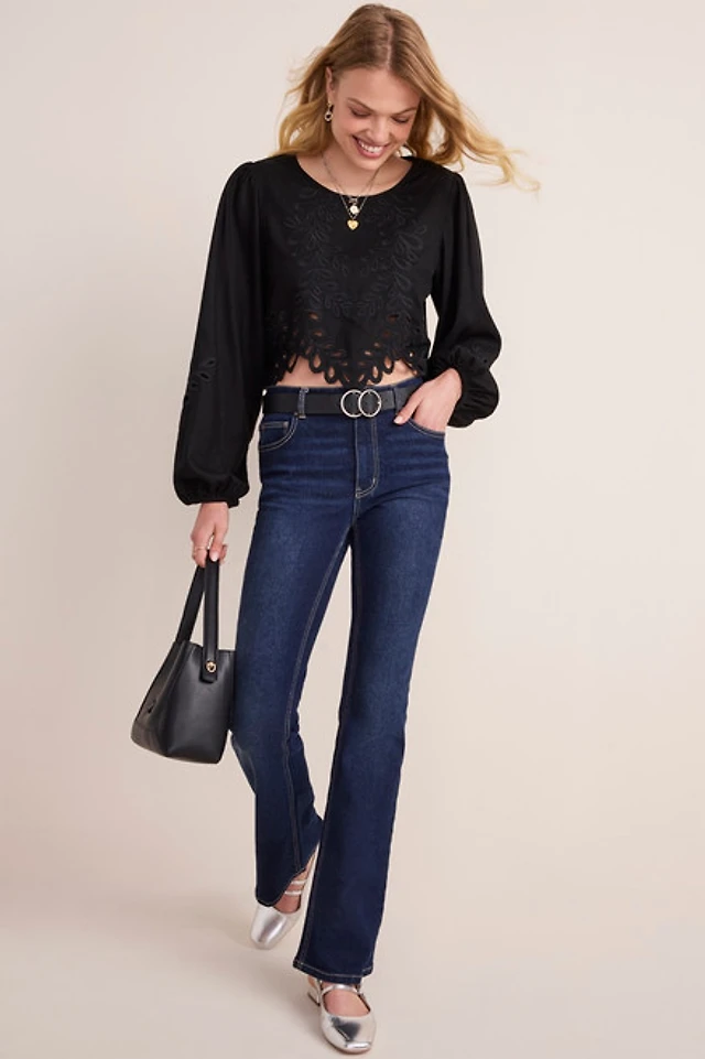 Claire Slouchy Fit Notch Neck Long Sleeve Top