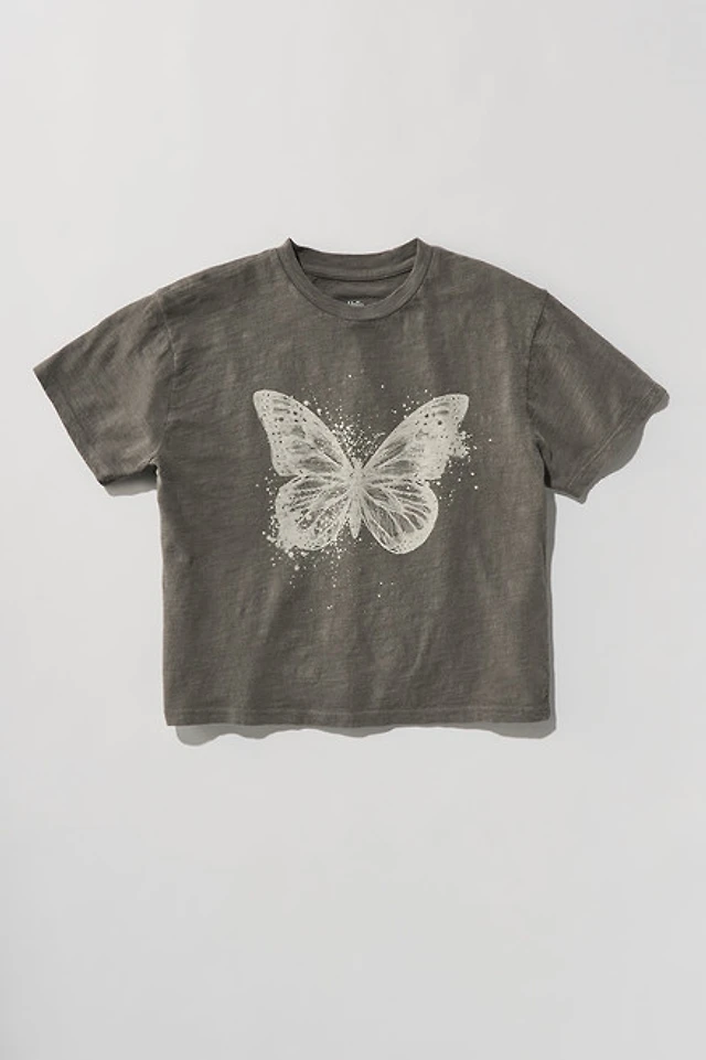 Hello Franki Butterfly Crop T-Shirt for girls Charcoal