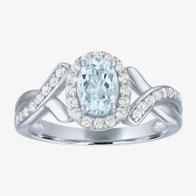 Womens Genuine Blue Topaz Sterling Silver Oval Side Stone Cocktail Ring