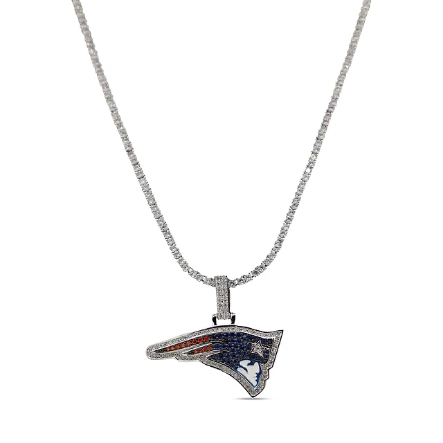 GLD New England Patriots 14K White Gold Logo Pendant & 20" Tennis Chain