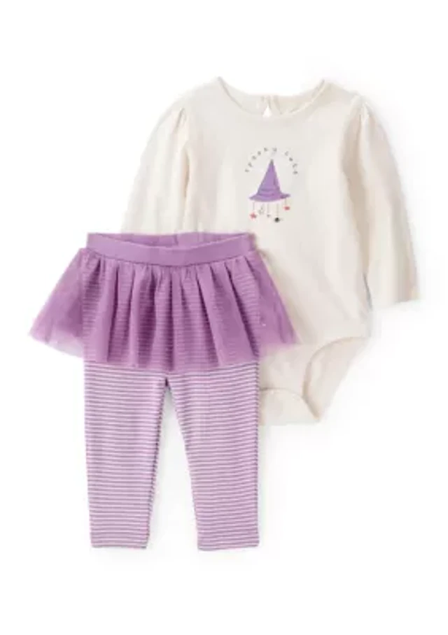 Toddler Girls Long Sleeve Bodysuit with Tulle Skirt and Pants