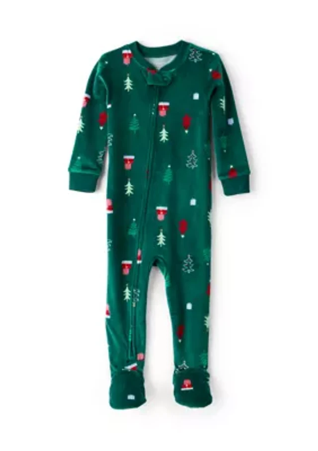 Baby Boys Firetruck Appliqué Fleece Footie Pajamas