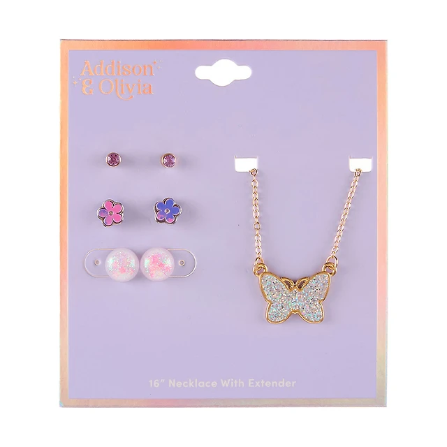 Gratitude & Grace Girls Pink Cubic Zirconia 14K Gold Over Brass Butterfly 3-pc. Jewelry Set