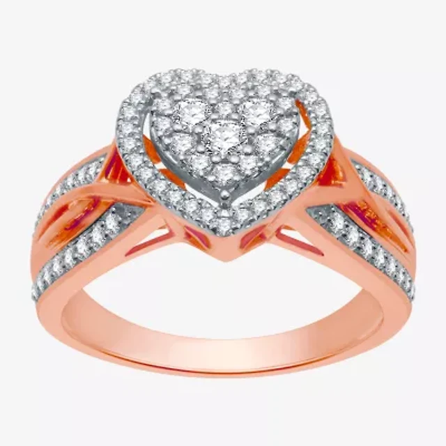 (G-H / Si2-I1) Womens 1/3 CT. T.W. Lab Grown White Diamond 10K Gold Heart Cocktail Ring