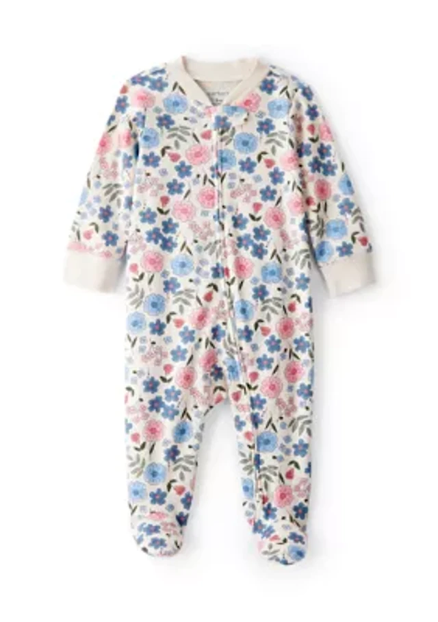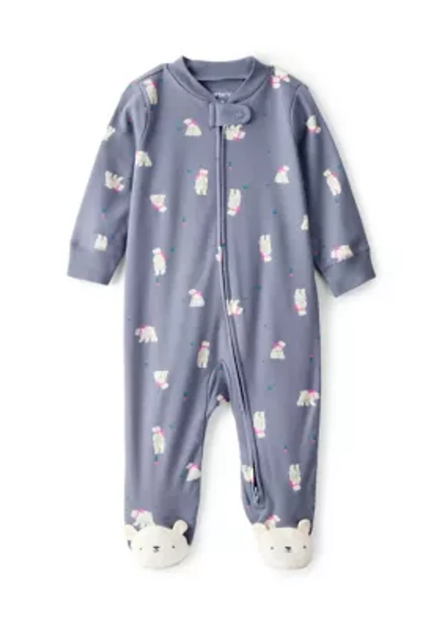 Baby Boys One Piece Printed Velour Footed Pajamas