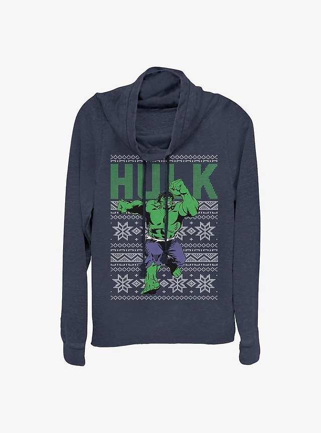 Marvel Hulk Ugly Christmas Sweater Cowl Neck Long-Sleeve Girls Top