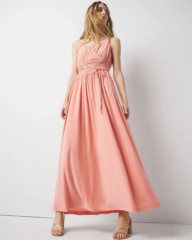 Ruched Satin Midi Dress