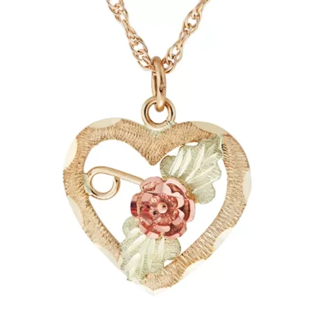 Black Hills Gold Womens 10K Tri-Color Gold Heart 18 Inch Pendant Necklace