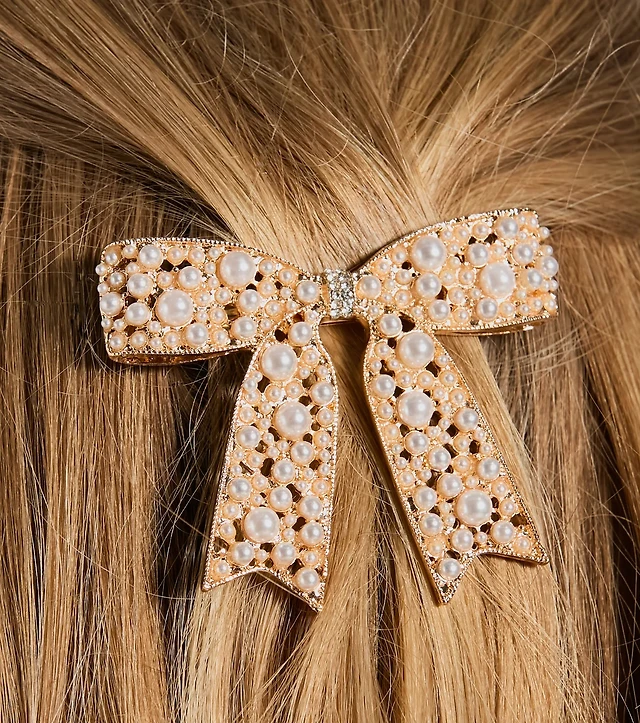 Feminine Charm Pearl Detail Hair Bow Barrette