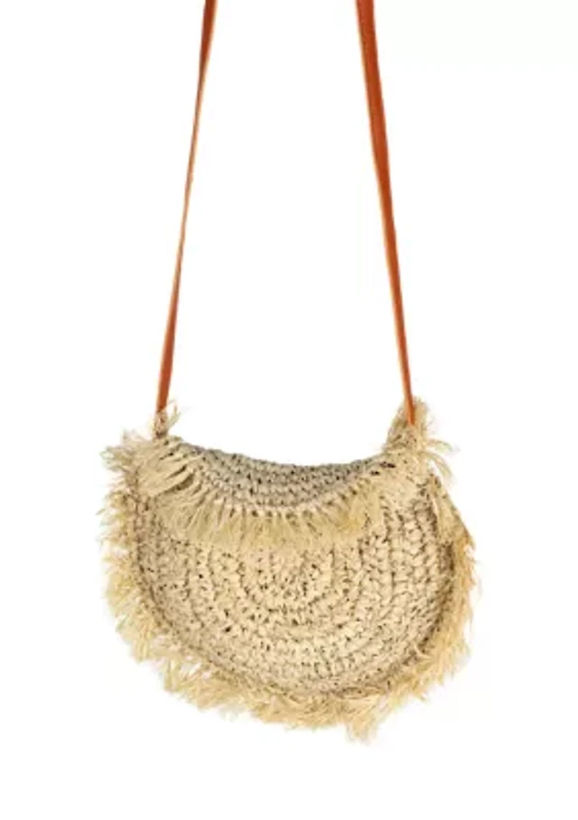 Straw Fringe Half Moon Crossbody