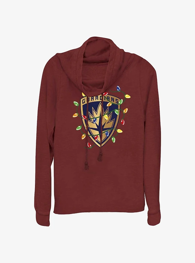 Marvel Guardians of the Galaxy Christmas Lights Badge Cowl Neck Long-Sleeve Top