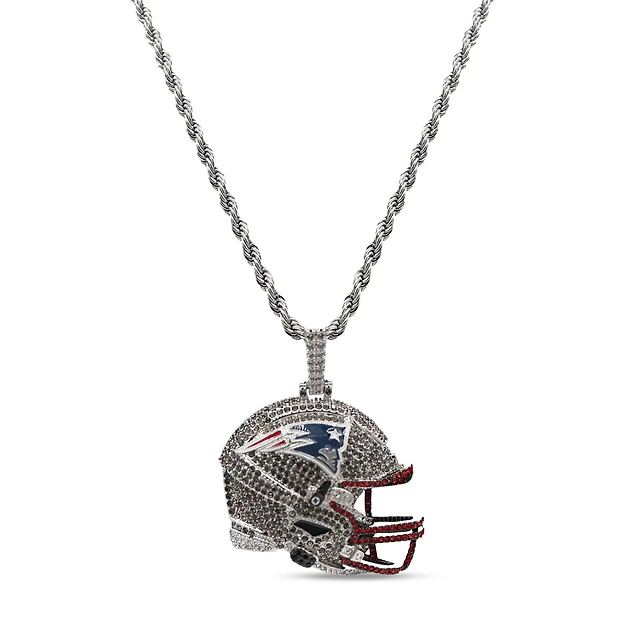 GLD New England Patriots 14K White Gold Helmet Logo Pendant & 20" Rope Chain