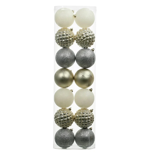 14 Pack 4" Gold & Silver Glitter & Starburst Shatterproof Ball Ornaments by Ashland®