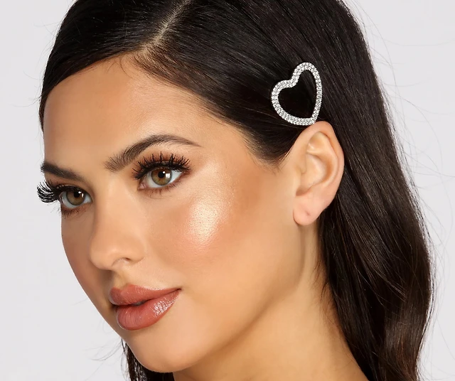 Red Fabric Bow with Diamante Heart Clip 2-Pack