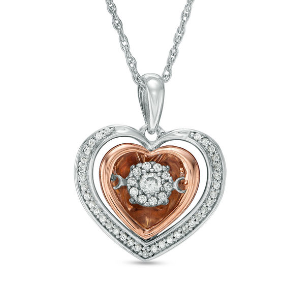 Heart-Shaped Lab-Created Ruby and Pink Sapphire 10K Gold Pendant with Diamond Accents