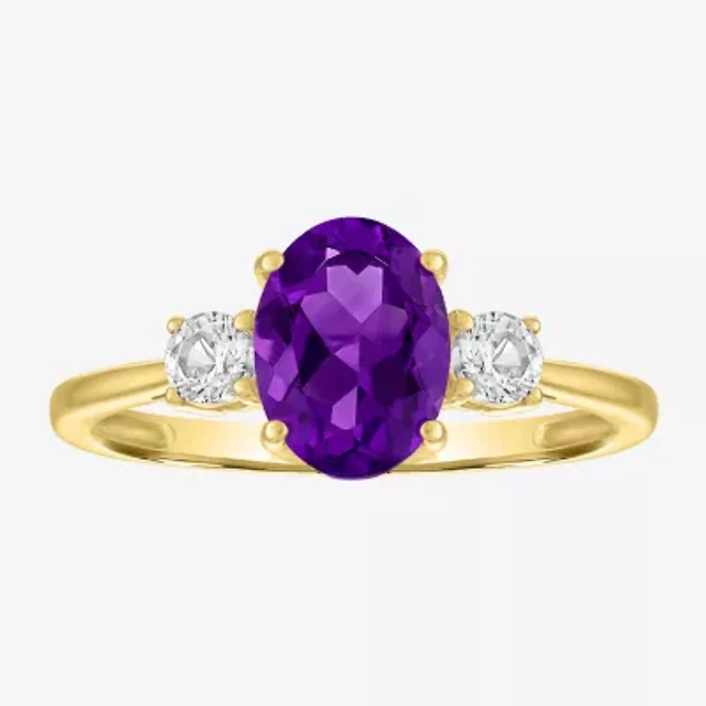 Gemstone 10K Gold 3-Stone Oval Cocktail Ring