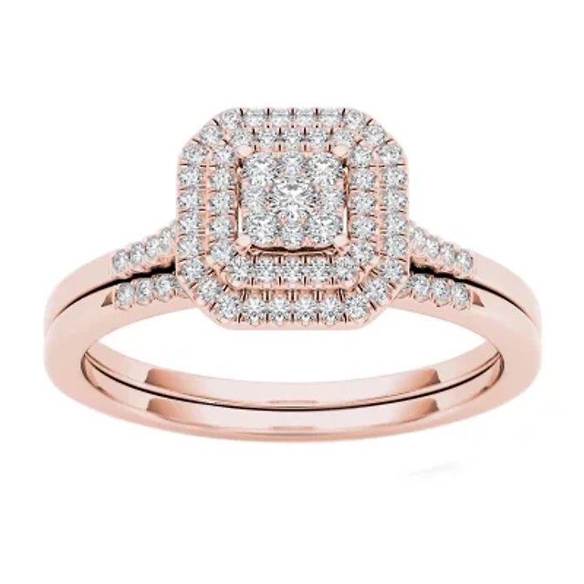 Womens 1/3 CT. T.W. Natural Diamond 10K Gold Side Stone Halo Bridal Set
