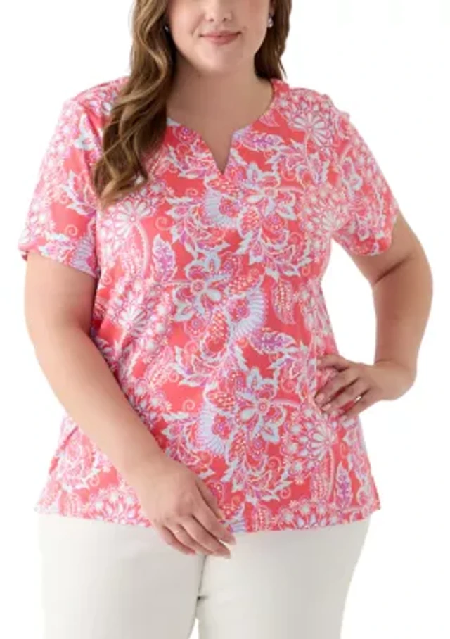 Plus 3/4 Sleeve Crew Neck Heather Graphic T-Shirt