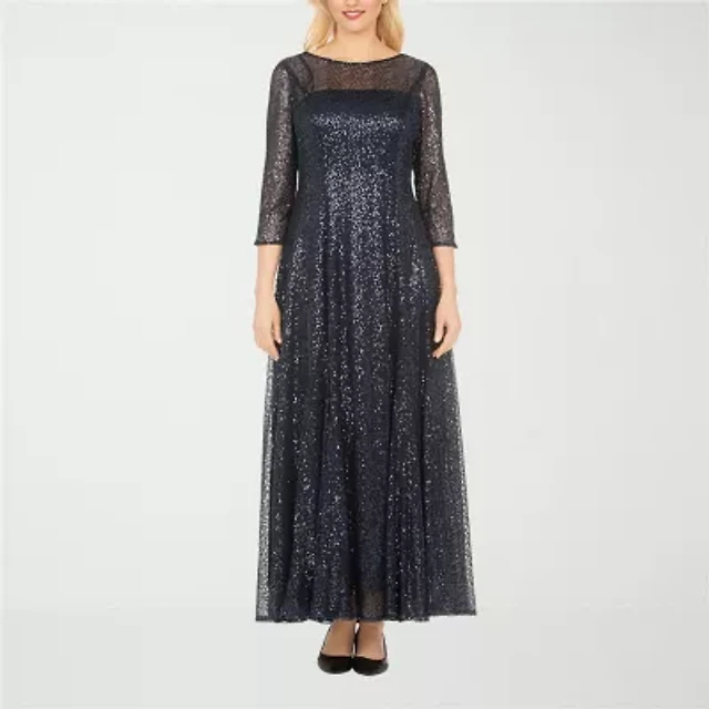 Studio 1 Womens Sequin 3/4 Sleeve Shift Dress