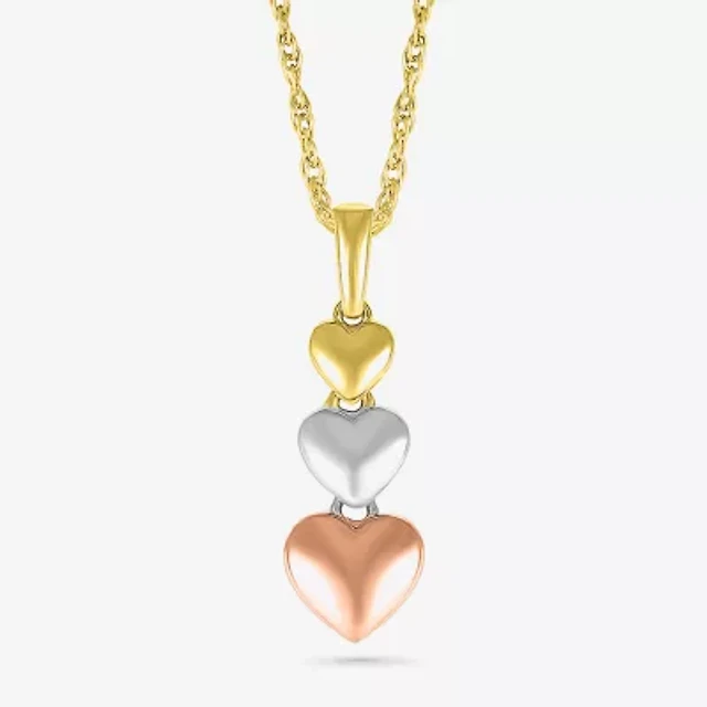 Womens 10K Tri-Color Gold Heart 18 Inch Pendant Necklace