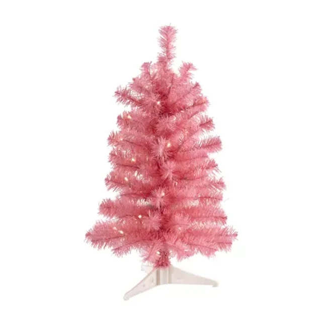 Nearly Natural 2 Foot With 72 Bendable Branches And 35 Led Lights Pre-Lit Pink Christmas Tree