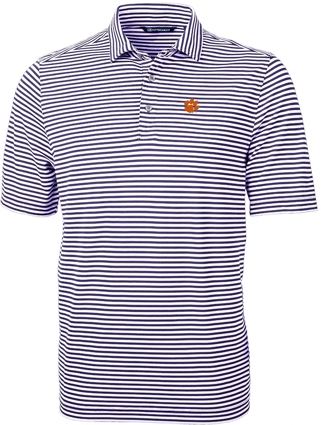 Cutter Buck Clemson Tigers Virtue Eco Pique Stripe Recycled Polo