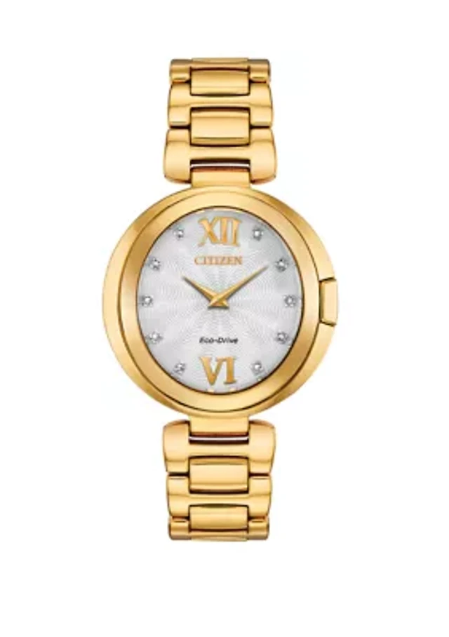 Tahari Adult Womens Analog Watch w Gold Case Dial and Bracelet w Genuine Diamond at 12 Model# TAH5692