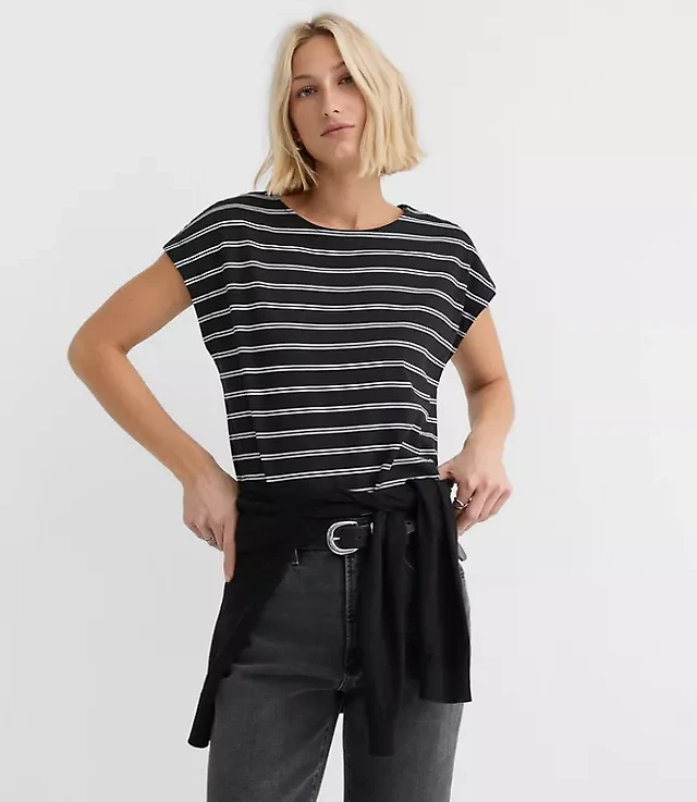 LOFT Versa Seasonless Stretch Strapless Pocket Top Stripe