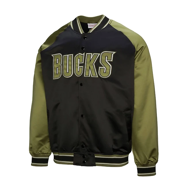 Mitchell Ness Black Milwaukee Bucks Clutch Satin Raglan Full-Snap Jacket