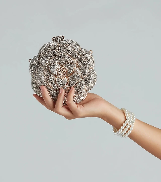 Divine Luxury Rhinestone Rose Minaudiere Bag