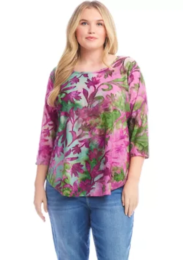 Plus 3/4 Chiffon Sleeve Woven Blouse