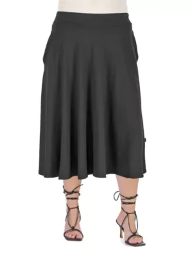 Plus Pleated Printed Midi Skirt