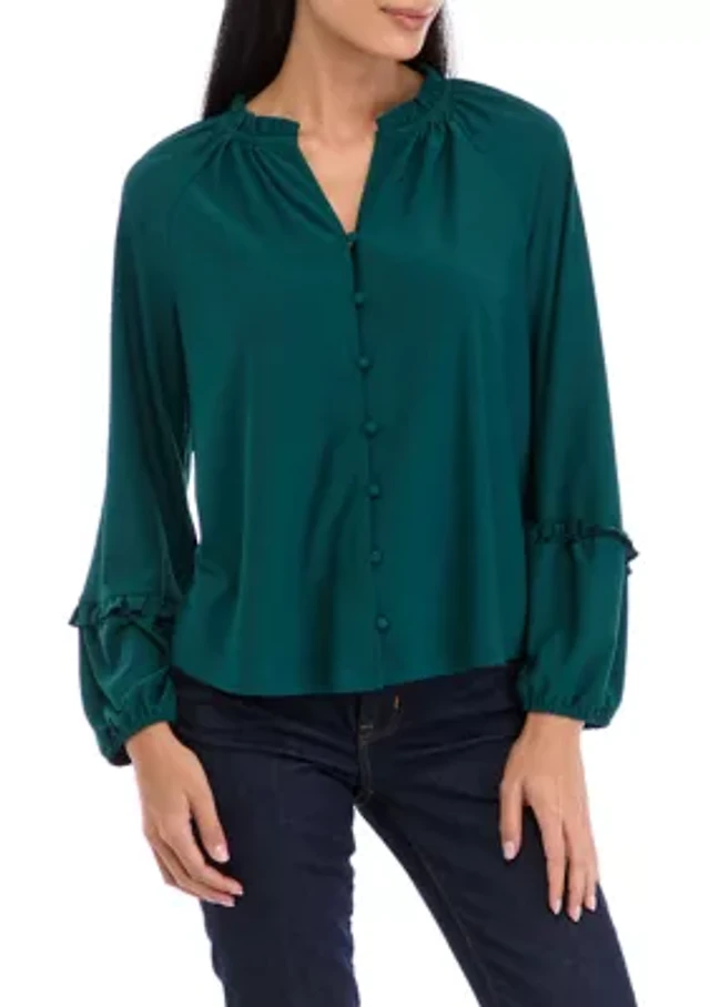 Petite Printed Button Front Blouse