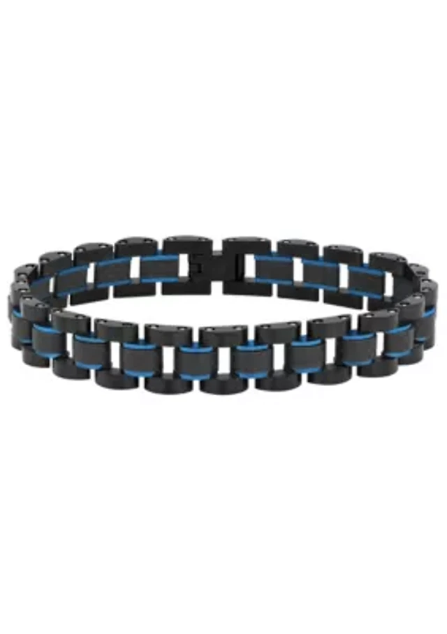 Men's two tone blue and black ip stainless steel box chain bracelet