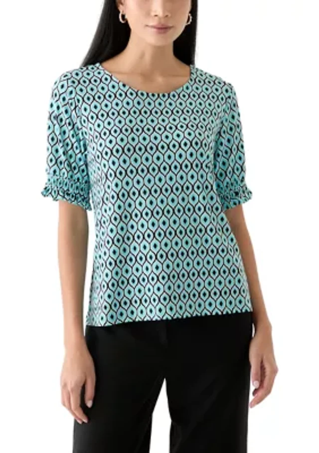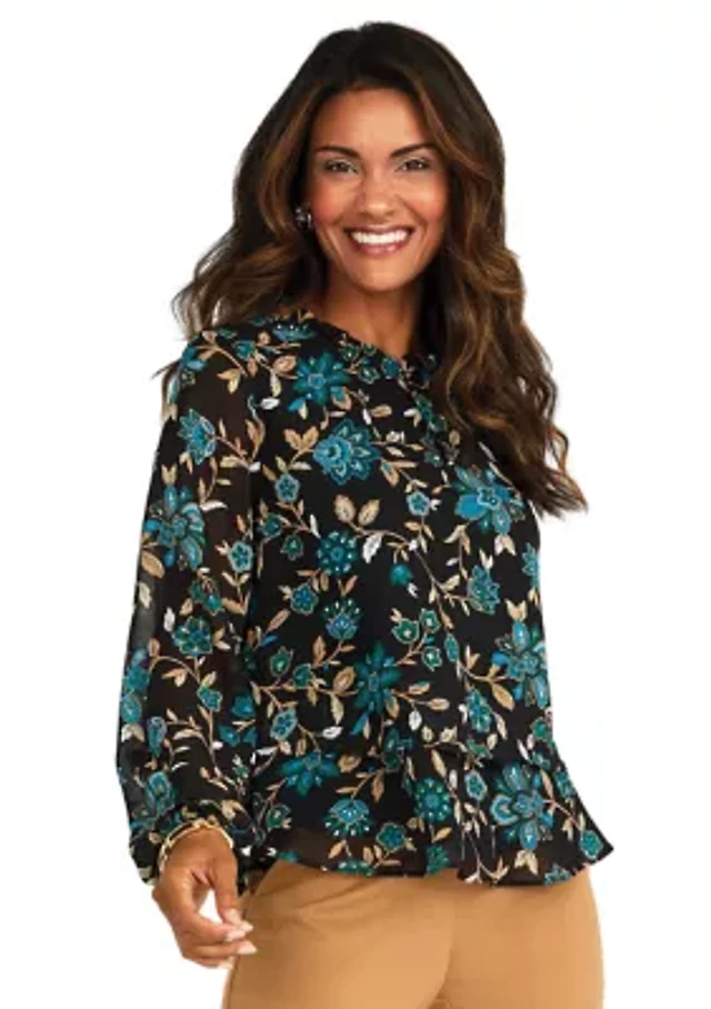 Plus Triple Pleat Leaf Print Sleeveless Blouse