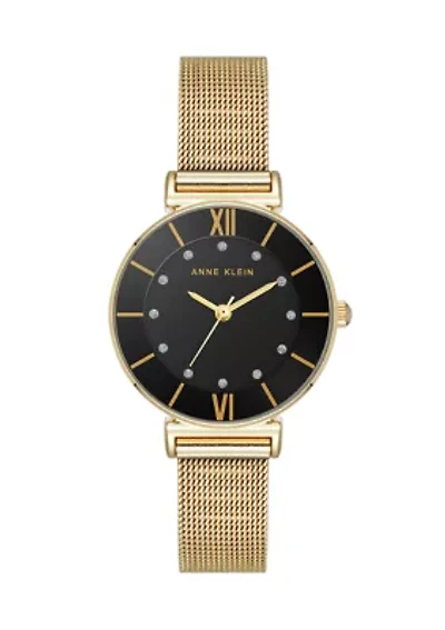 Quartz Faceted Crystal Bezel Gold-Tone Alloy Metal Watch