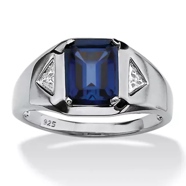 Men's Emerald-Cut Gold-Plated Simulated Black Onyx Rectangle Ring