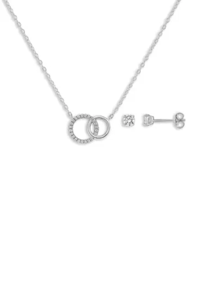 Sterling Silver Cubic Zirconia Halo Stud Earring Set