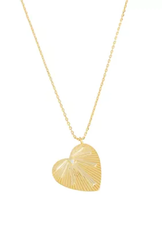 Silver-Tone Cubic Zirconia Bar Heart Necklace