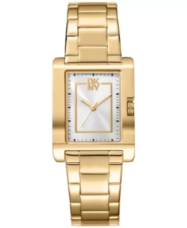 DKNY Women's Silver Dial Crystal Bezel Gold-Tone Stainless Steel Bracelet Watch 30mm 30M