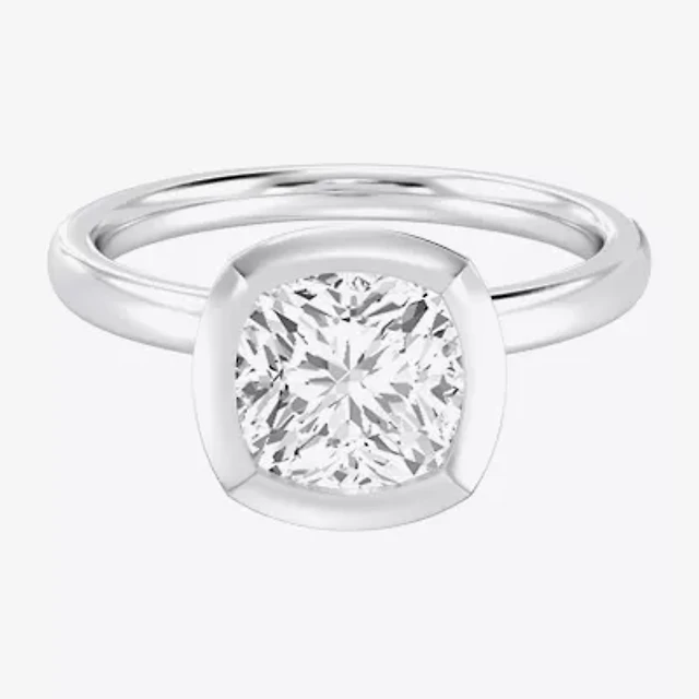 (G/Si2) Womens 4 CT. T.W. Lab Grown White Diamond 10K Gold Cushion Halo Side Stone Cocktail Ring