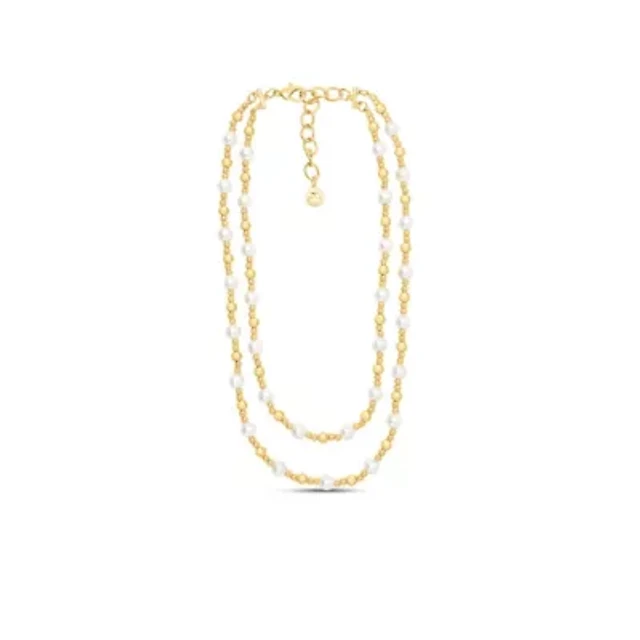 Two Strand Pearl and Gold Ball Necklace, 20 Inches For Women