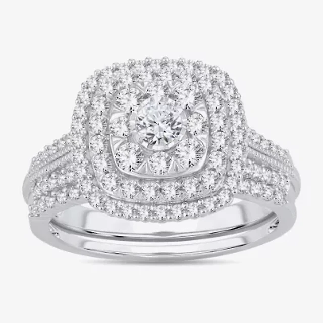 Womens 1/2 CT. T.W. Natural White Diamond 10K Gold Cushion Halo Bridal Set